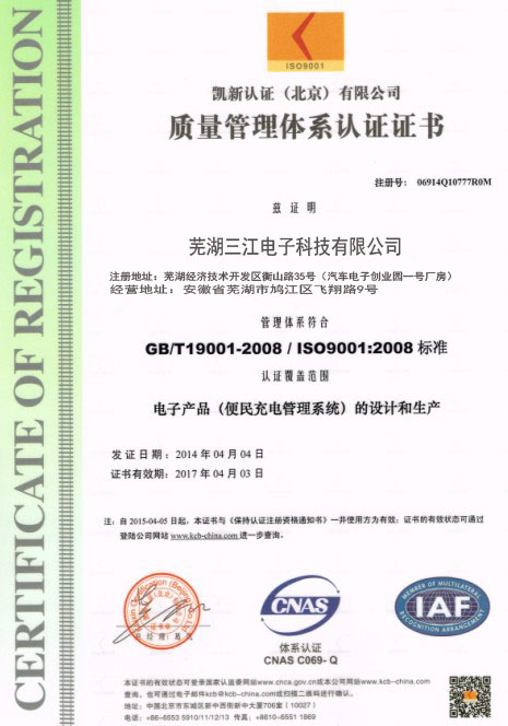 蕪湖三江電子科技有限公司,位于美麗的江城蕪湖,是一家目前國內專業(yè)從事智能式自助產品的研發(fā)、生產、銷售及自助產品服務為一體的科技型企業(yè)。主要經營:電動車充電站,電動車充電站配件,小區充電站,便民充電站、投幣充電站、手機支付充電站、刷卡充電站、智能充電站、智能充電系統等。歡迎大家來公司參觀考察!公司秉承“顧客至上,銳意進取”的經營理念,堅持“客戶至上”的原則為廣大客戶提供優(yōu)質的服務。歡迎廣大新老客戶惠顧!